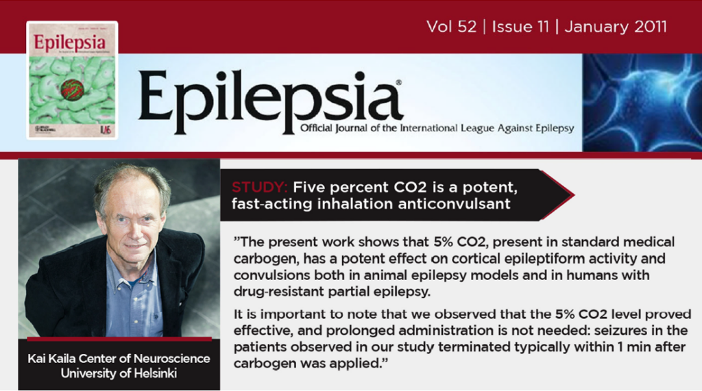 “Five percent CO₂ has a fast and potent anticonvulsant action. The present data suggest that medical carbogen with 5% CO₂ can be used for acute treatment to suppress seizures in epilepsy patients.”